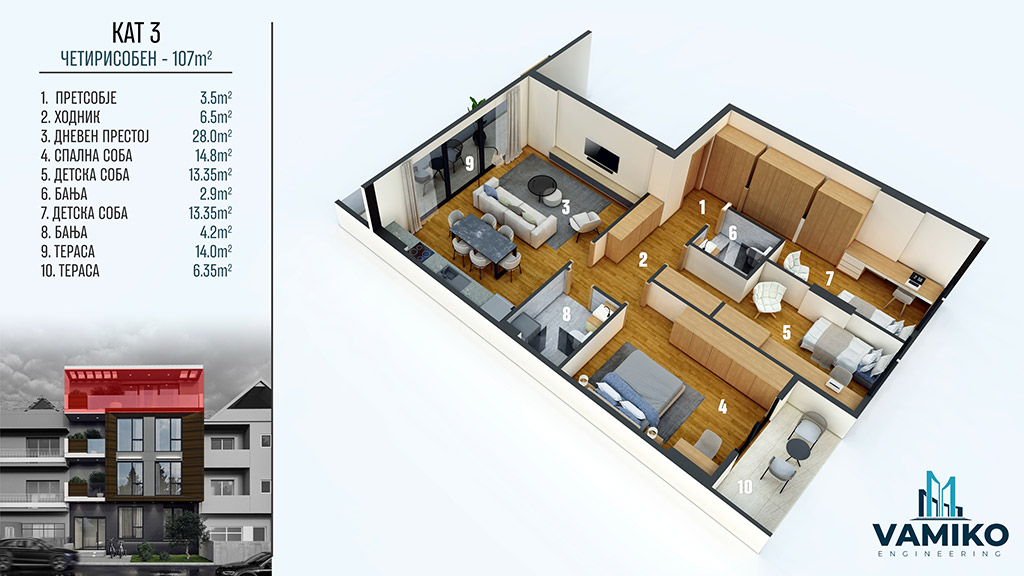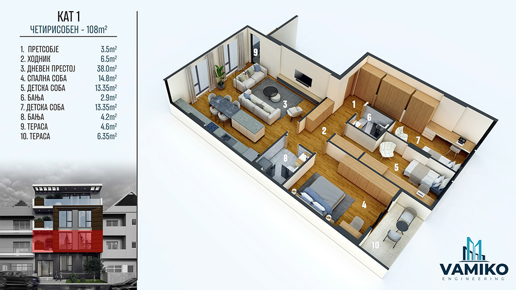 Модерен, совршен и уникатен стил, изграден со целосна посветеност и секој сантиметар претворен во корисен простор за идните корисници на нашите стамбени единици. Внимателно планиравме и избравме локација која ке нѝ овозможи да бидеме мобилни во секојдневните обврски а во меѓувреме настрана од јавниот секојдневен метеж.